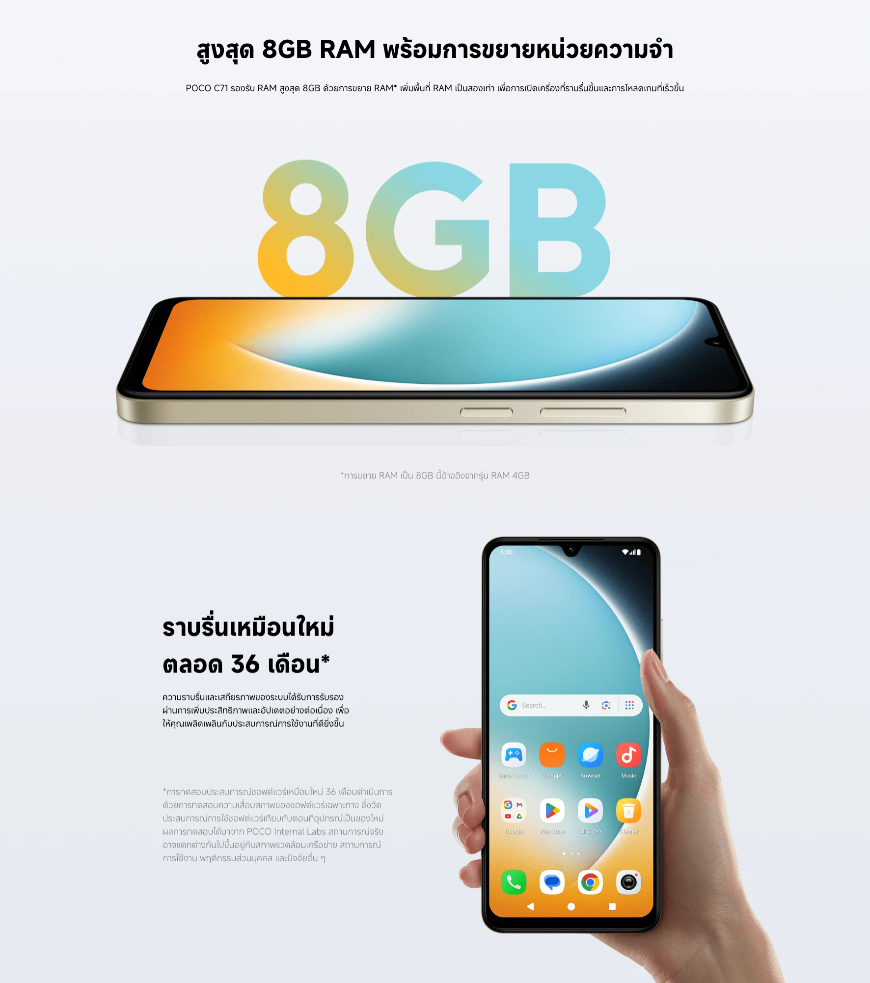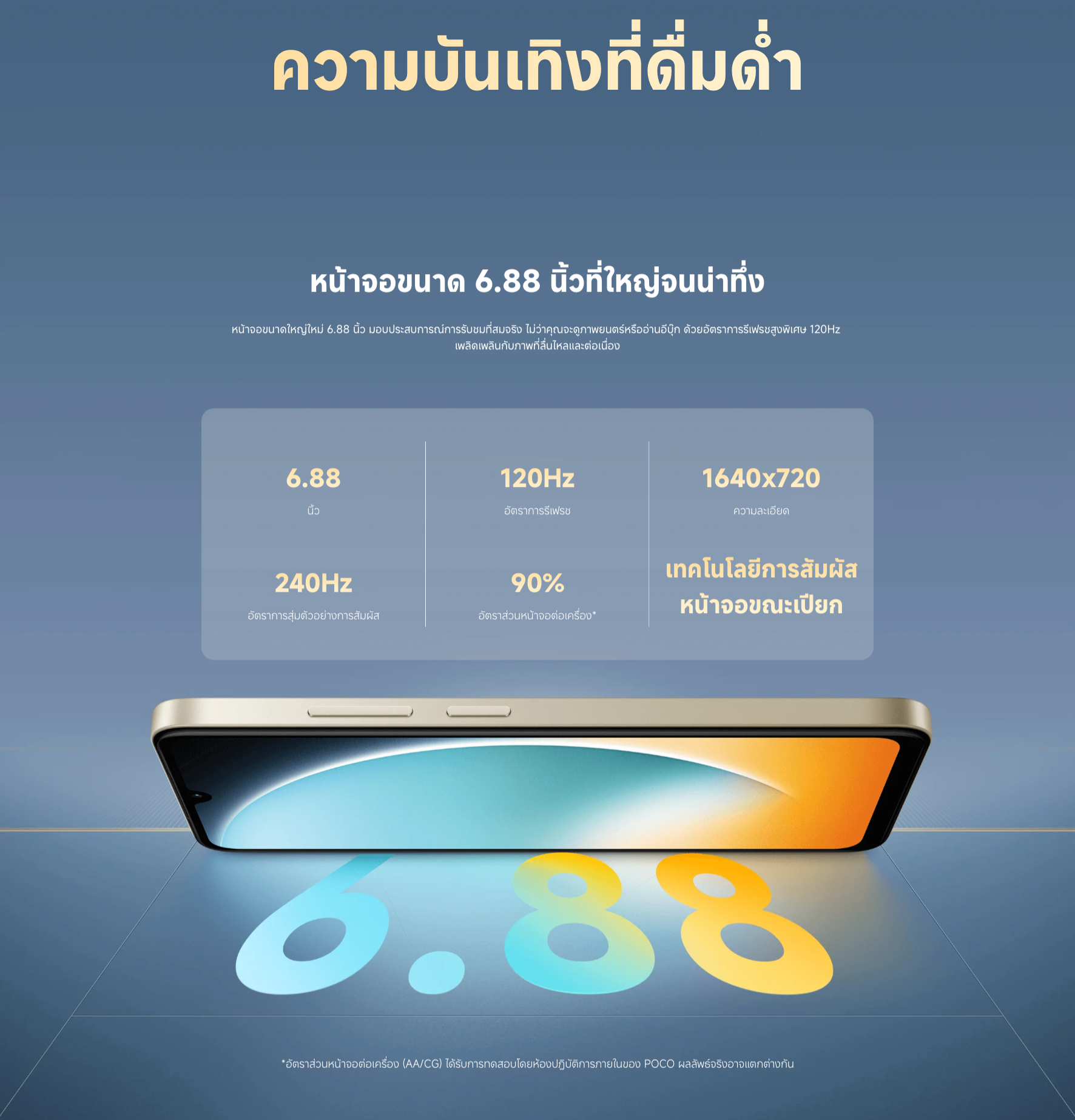 Xiaomi POCO C71 โทรศัพท์มือถือ 3+64/4+128 โทรศัพท์ แบตเตอรี่ 5200mAh หน้าจอ 6.88" 120Hz อัตราการรีเฟรช