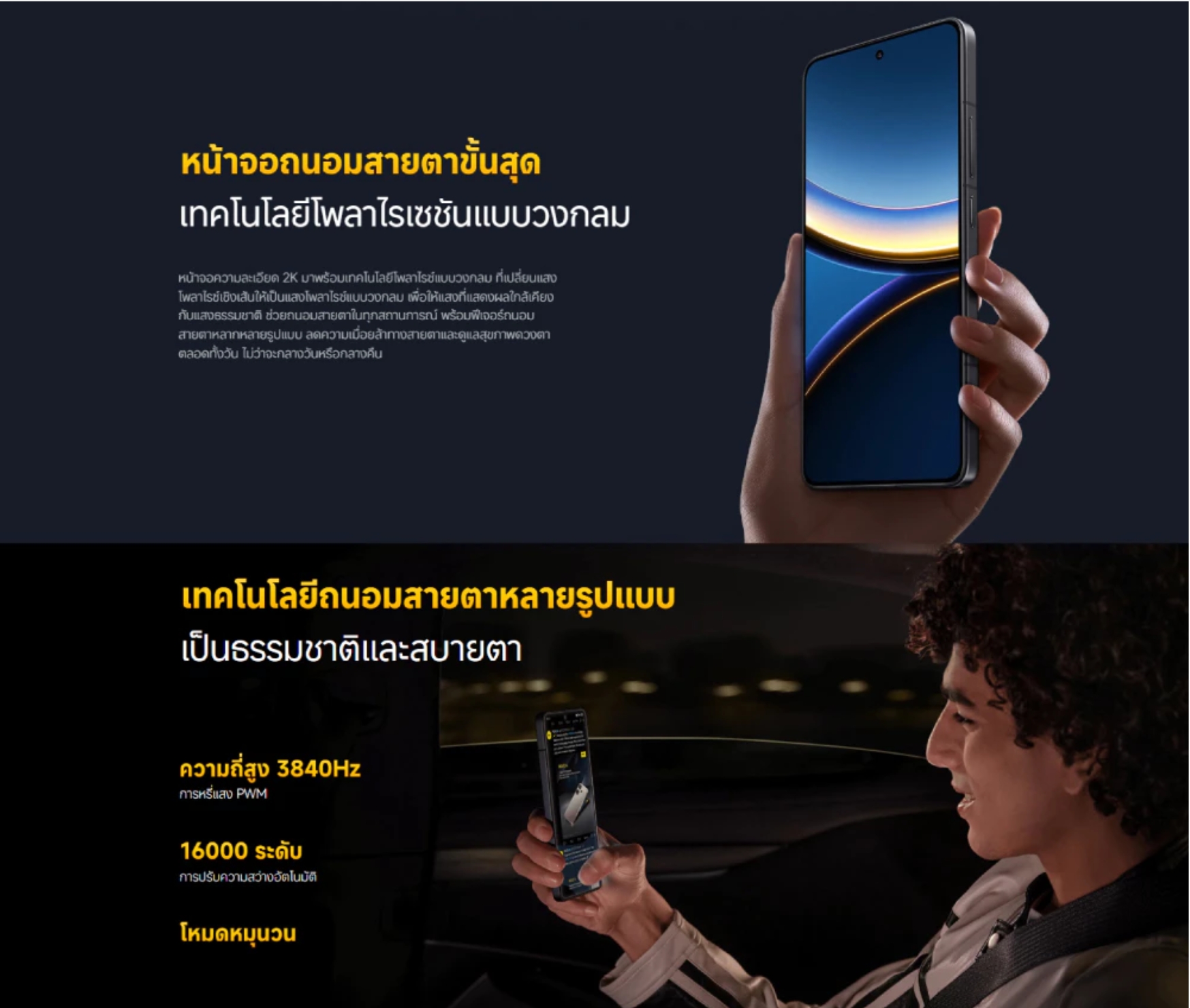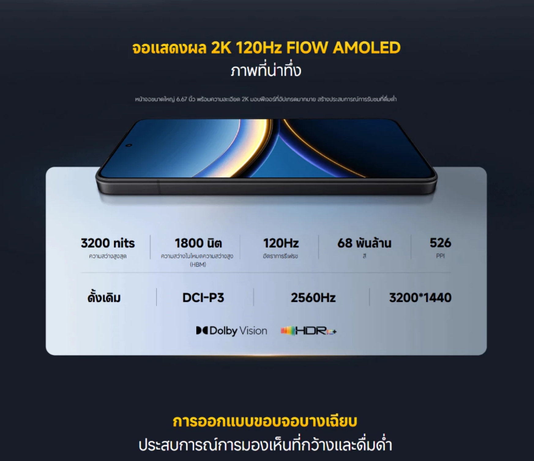 POCO F7 PRO 5G 12+256/12+512 ชิปเซ็ต AMOLED 2K120Hz Snapdragon® 8 Gen 3 แบตเตอรี่ขนาดใหญ่ 6000mAh (typ)|หน้าจอ