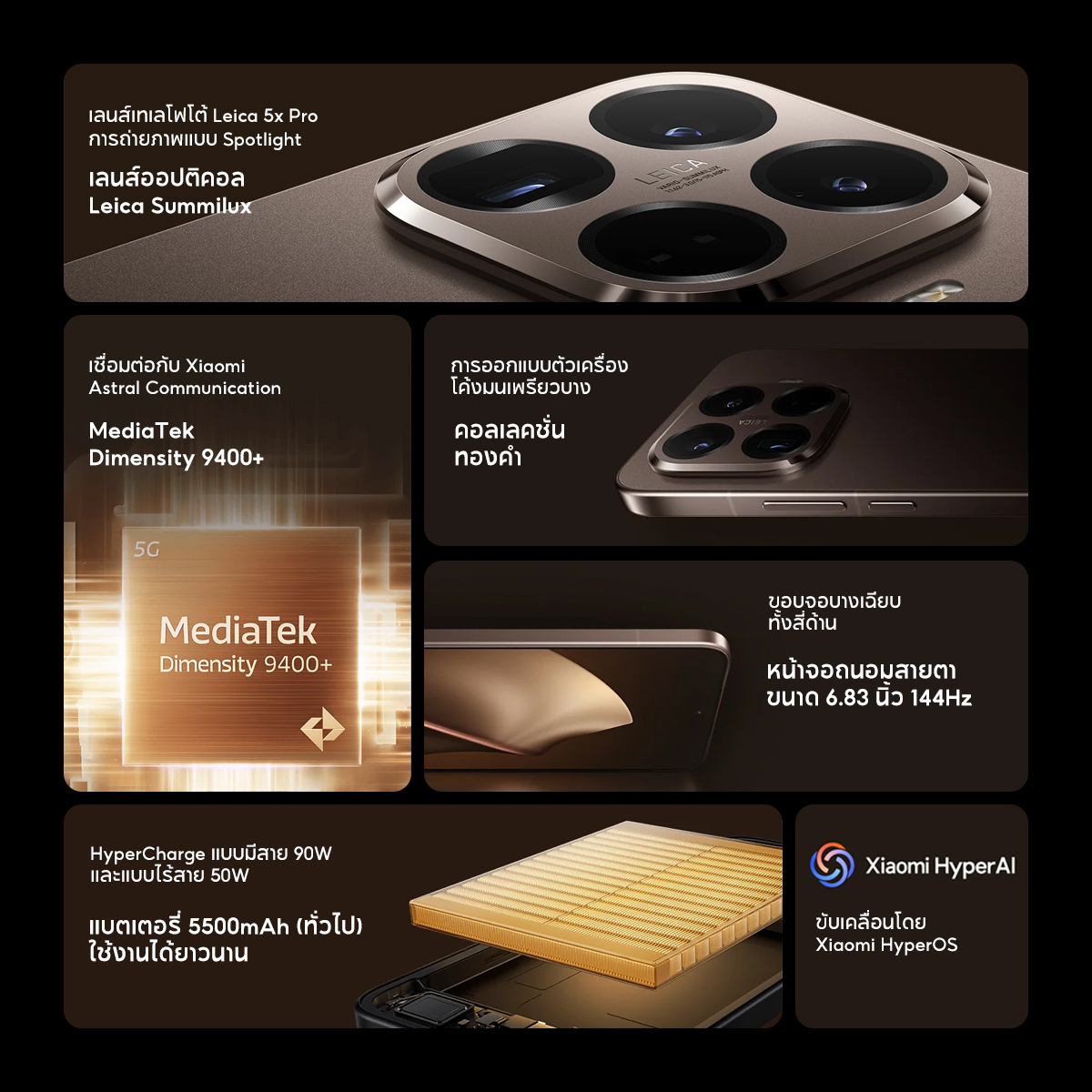 Xiaomi 15T Pro กล้อง Leica ซูม 5x ชิปประสิทธิภาพสูง MTK Dimensity 9400+ 3nm ชาร์จเร็ว 90W หน้าจอ 144Hz LIPO AMOLED