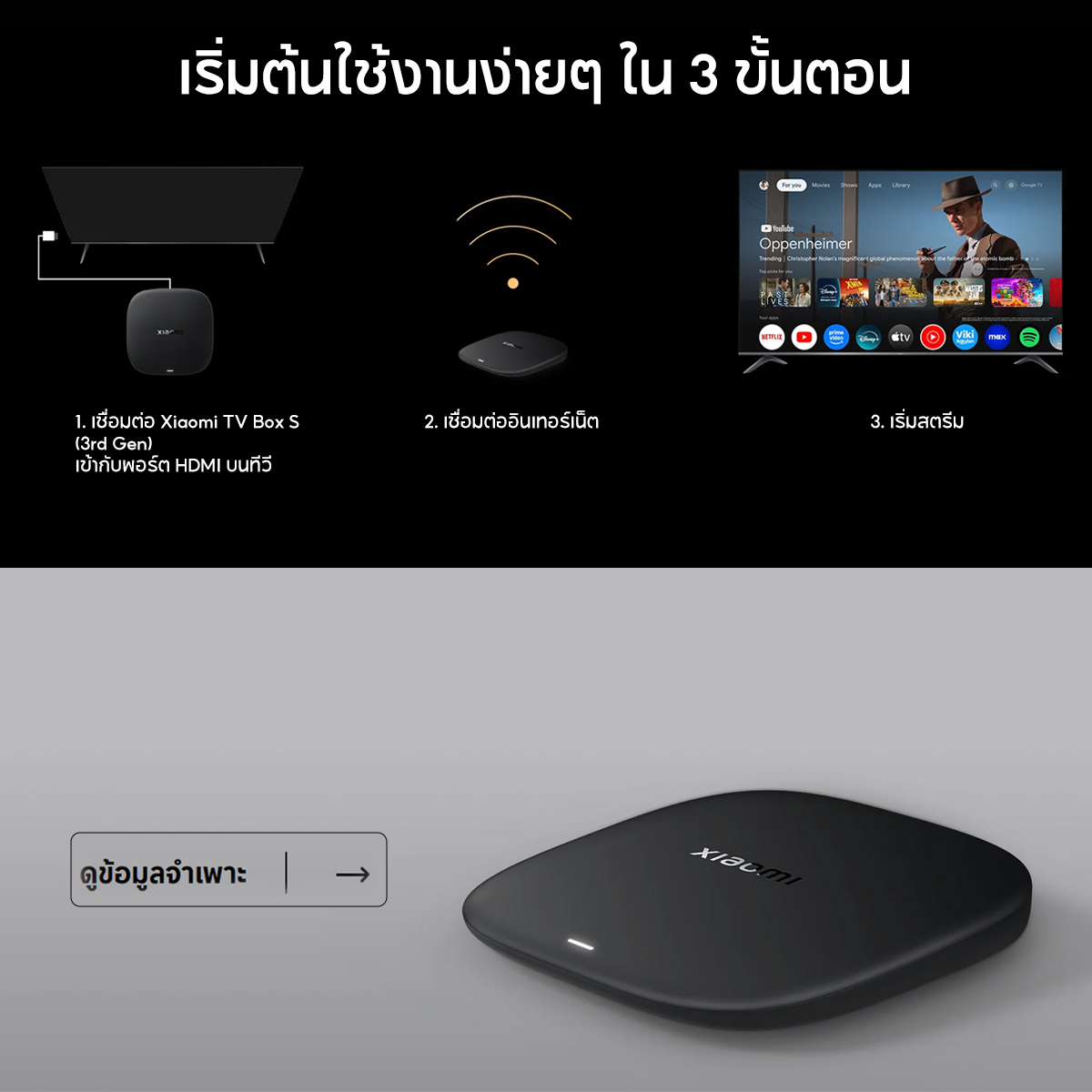 Xiaomi Mi Box S 3rd Gen 4K กล่องแอนดรอยด์ทีวี Android TV รองรับภาษาไทย รองรับ Google Assistant กล่องรับสัญญา ทีวี