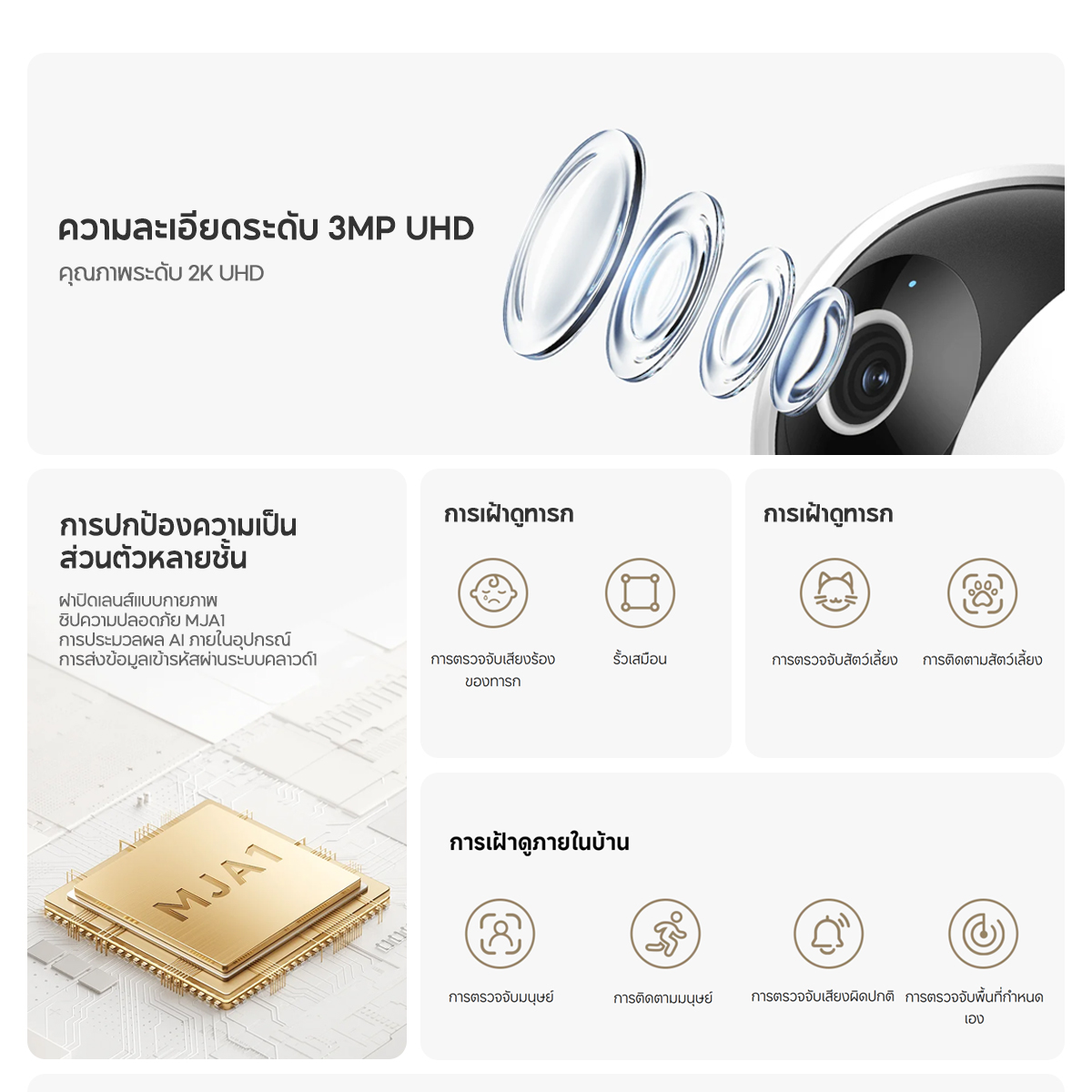- มีเซ็นเซอร์ตรวจจับความเคลื่อนไหวโดยใช้เทคโนโลยี AI เพื่อช่วยเพิ่มประสิทธิภาพในการเตือนให้ดีขึ้น