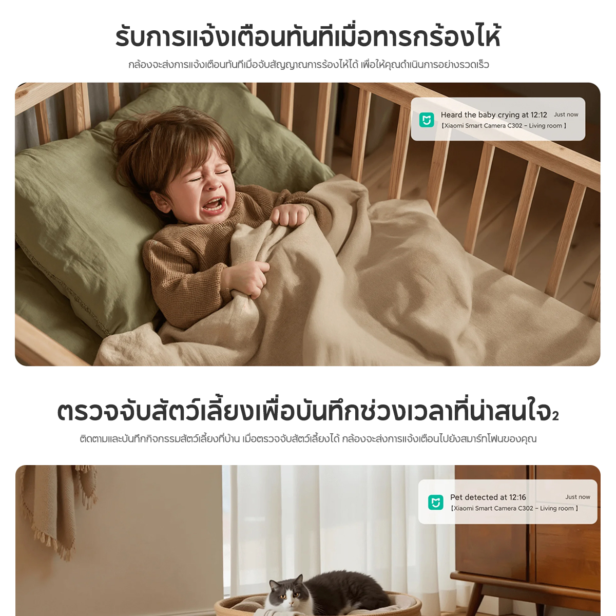 - การตรวจจับเสียงร้องของทารก รับการแจ้งเตือนทันทีเมื่อทารกร้องไห้