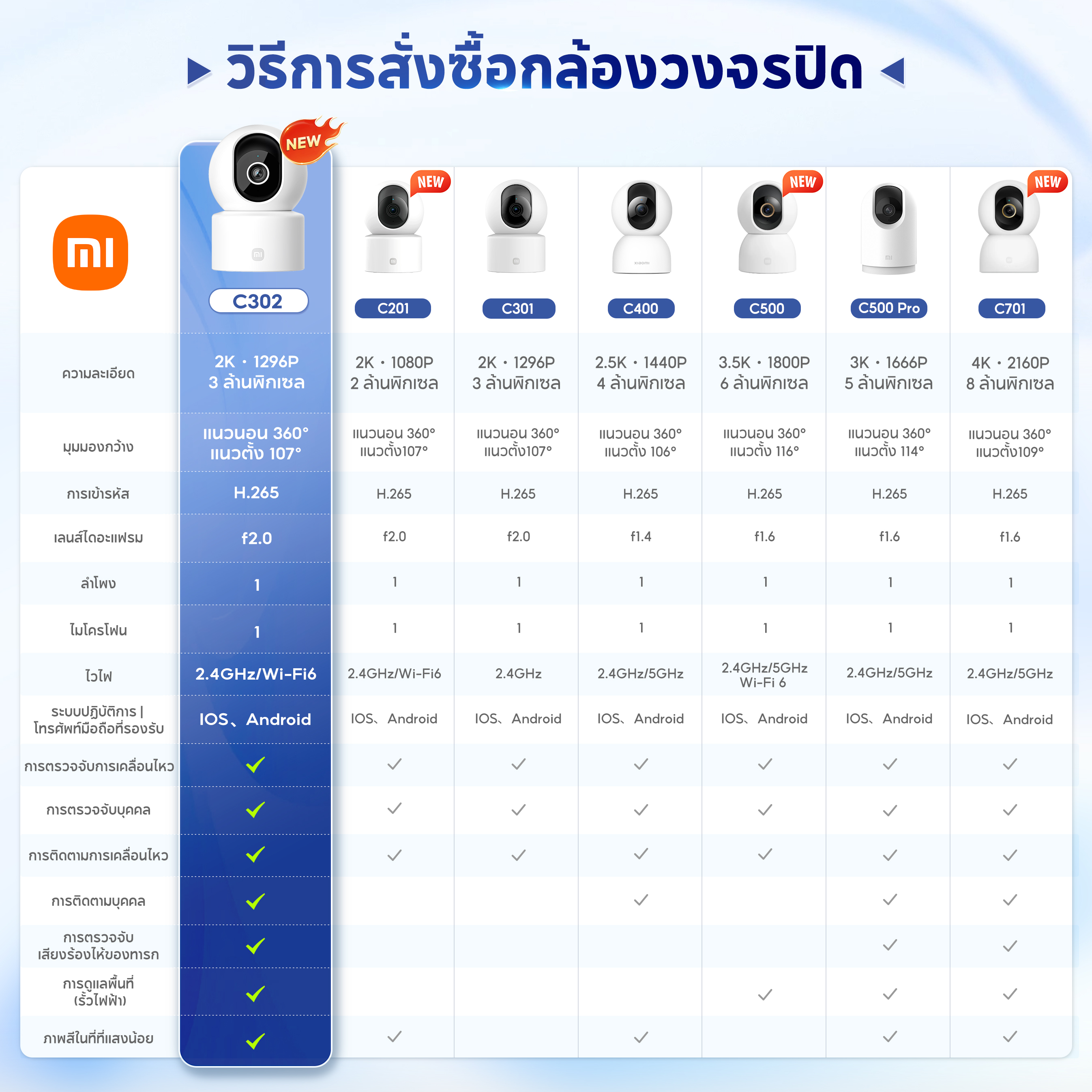 Xiaomi Mi Smart Camera C201/C302/C301/C400/C500/C701 Home Security Camera กล้องวงจรปิดไร้สาย2K กล้องวงจรปิด พาโนรามา360°