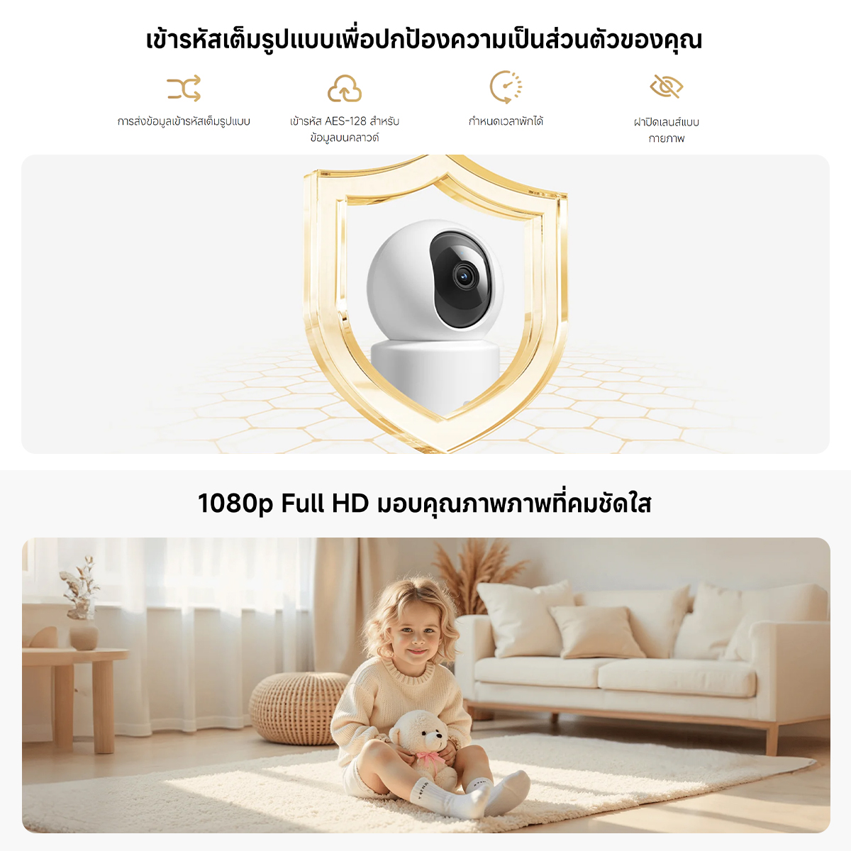 Xiaomi Mi Smart Camera C201 Home Security Camera ความละเอียดสูง1080p Full HD การป้องกันเลนส์ทางกายภาพ พาโนรามา360°