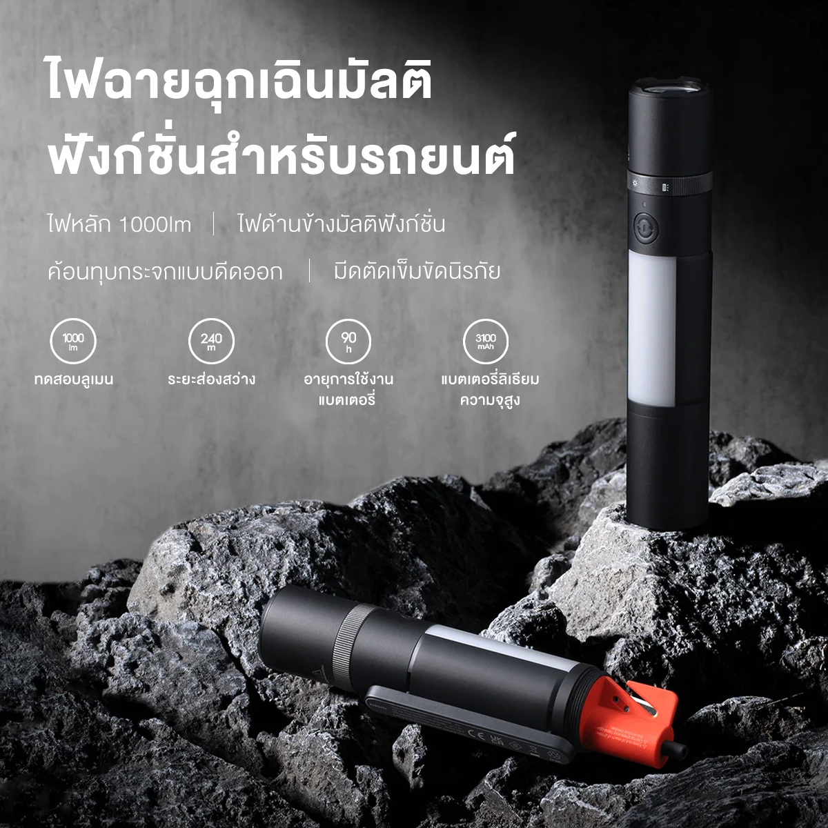 ไฟดวงหลัก 1000lm* | ไฟข้างอเนกประสงค์