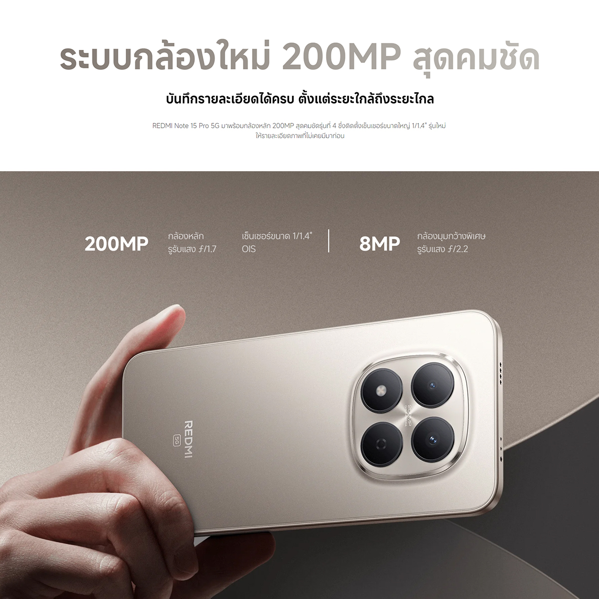 Xiaomi Redmi Note 15 Pro 5G ชิป MTK Dimensity 7400 Ultra กล้องระดับโปร'ความคมชัดสูง 200MP แบตเตอรี่ 6580mAh
